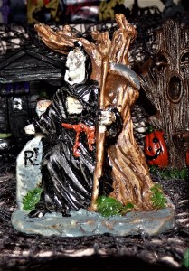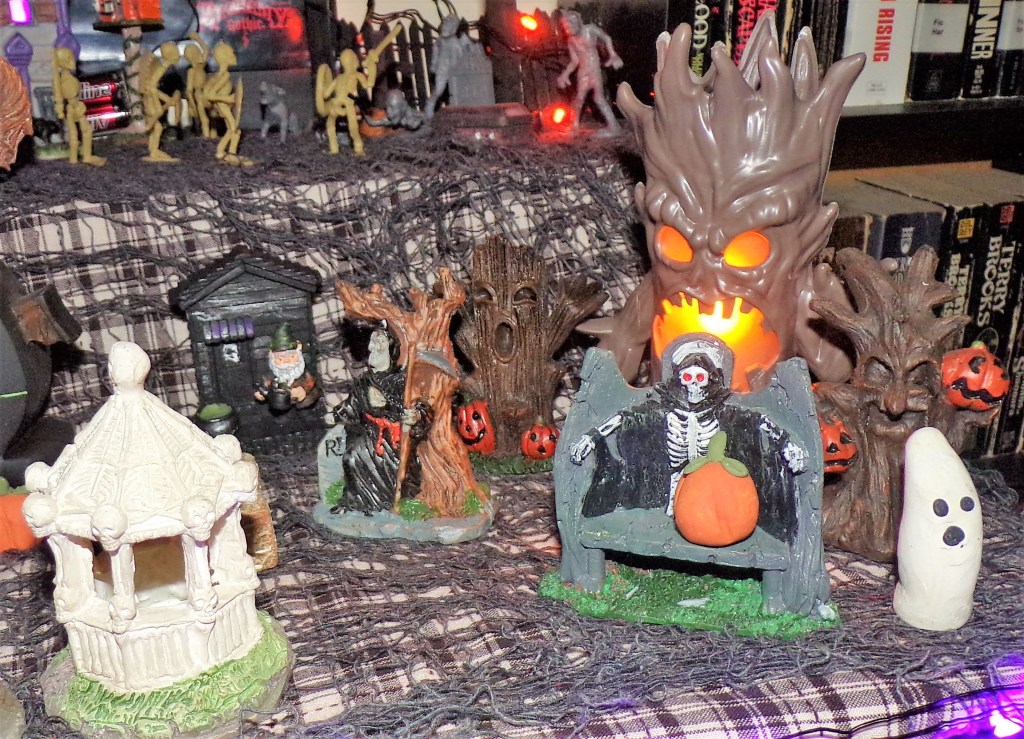 I love decorating for the holidays. I always have. Every year, I put up several villages atop one of our bookcases. One of those villages is a “Halloween Town” that I started several years ago and add to every single year.