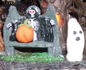 At first, he hated his lot in life. He was a skeleton gargoyle on a bench in the Haunted Forest. He didn’t want to be a skeleton gargoyle on a bench in the Haunted Forest. It was boring being a skeleton gargoyle on a bench in the Haunted Forest. But as the years went by, he began to embrace that he was a skeleton gargoyle on a bench in the Haunted Forest, especially when he struck up a friendship with GusGus.