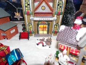 Like my Halloween Town (which has a series of blog post short stories written about it), I also have a Christmas village, created from a plethora of mismatched pieces I have collected over the years. It too resides on the bookcase upon which Halloween Town makes its appearance, usually being set up the weekend after Thanksgiving and taken down after Epiphany every year.