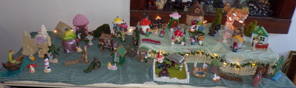 This year, I finally am writing a series of stories about my fairy village, since today is Saint Patrick’s Day. It’s not as grand as the other two…. yet. But I am building it year by year. So here goes…….